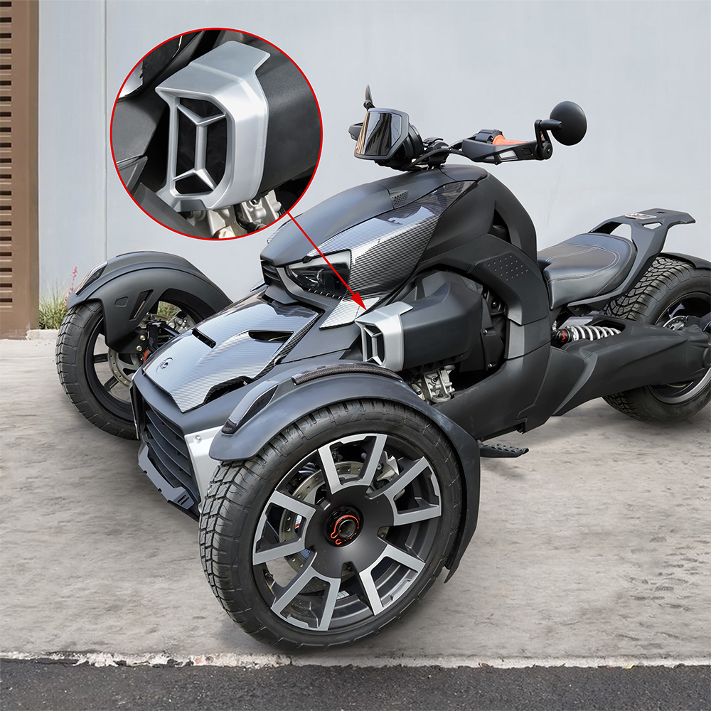 SAUTVS Air Intake Accents with Pre-Filter for Can-Am Ryker is a plastic silver engine vent kit for Can-Am Ryker all models accessories that comes in a set of two pieces and replaces #219401025. It is made from injected high-density polypropylene (HDPE), tasteless and durable.