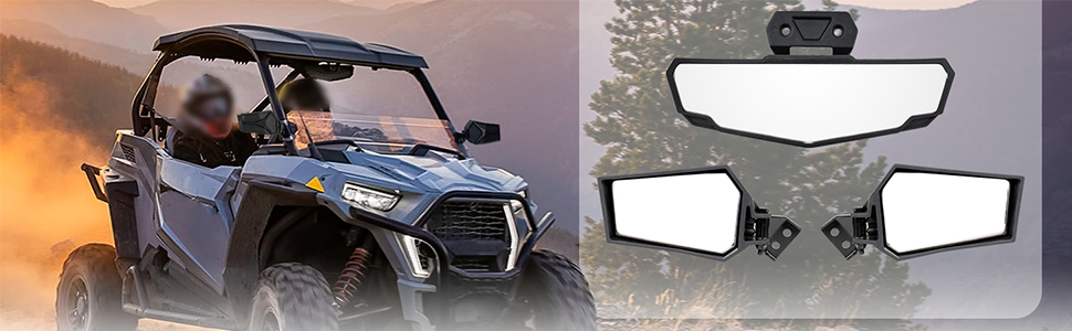 The Center Rearview Mirror and Side Rear View Mirrors Kit for Polaris RZR Trail S 900 Sport Trail S 1000 Premium Trail S 1000 Ultimate is a must-have accessory for your Polaris RZR. This kit includes a center rearview mirror and two side rearview mirrors that are designed to provide you with a clear view of your surroundings while you’re out on the trails.