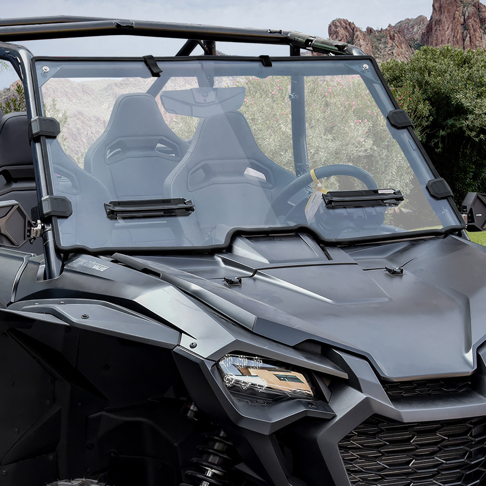 If you want to enhance your Honda Talon 1000 with a hard coat poly vented front full windshield from SAUTVS. It will give you the best of both worlds: protection and performance. Get ready for an amazing ride!