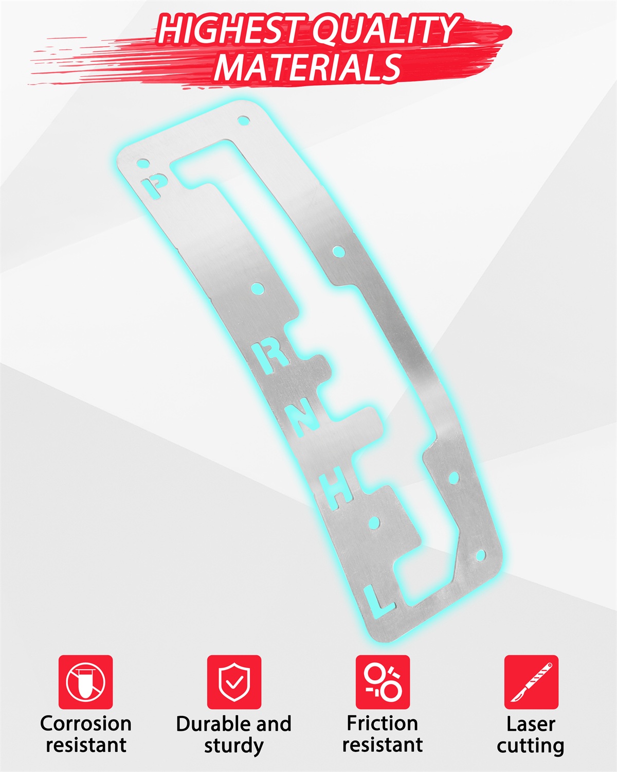 - HIGH QUALITY MATERIALS: Made of high quality gloss stainless steel with high strength, durable service, with strong corrosion resistance; With outstanding advantages of friction resistance and scratch resistance, protects the original plastic shift gate from excessive wear or breakage; Can work in any weather environment
