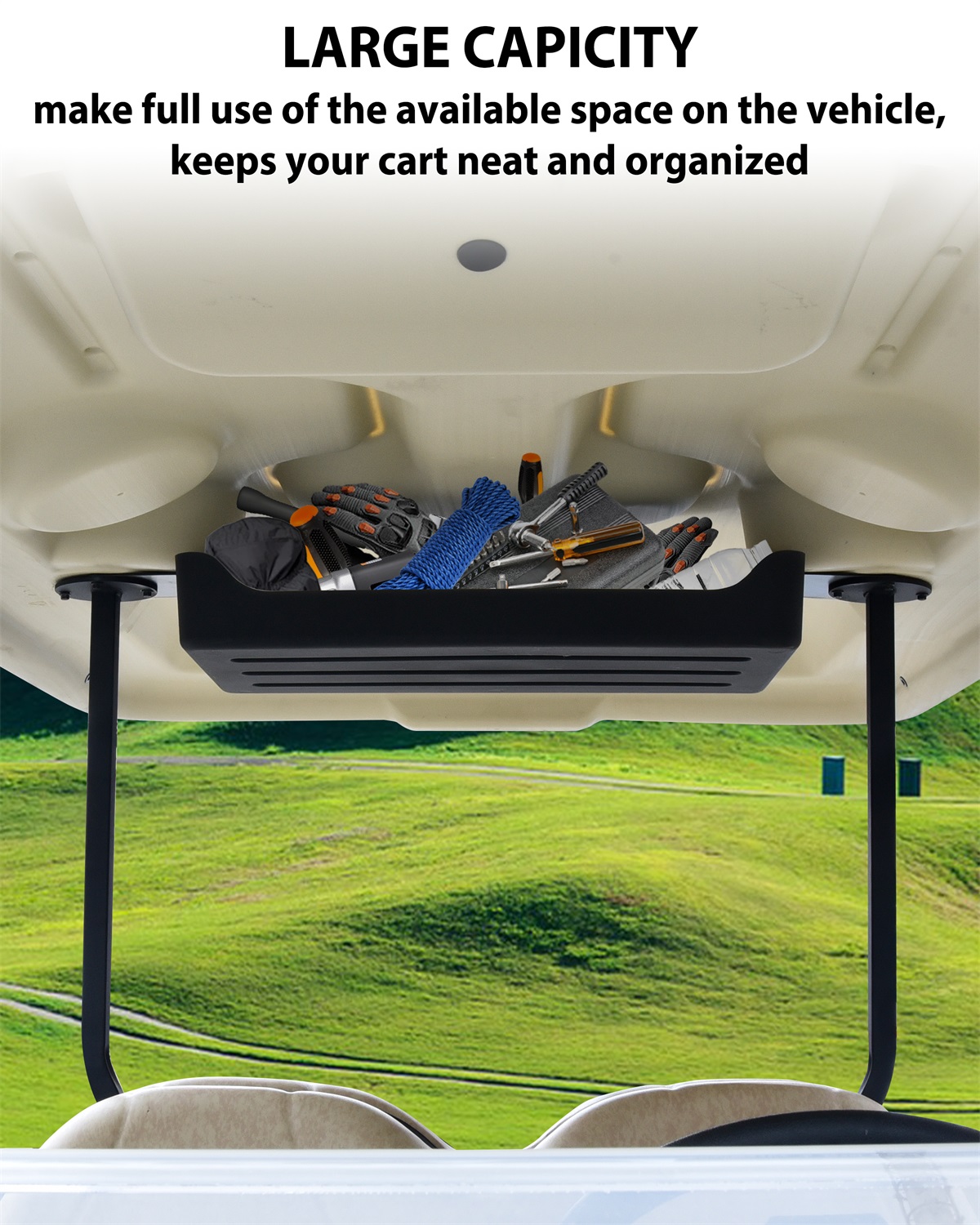 - Package includes: One piece of overhead storage box with mounting hardware, installation manual; Easy to install; No need to drill holes to destroy your golf cart; Please refer to the installation video or manual