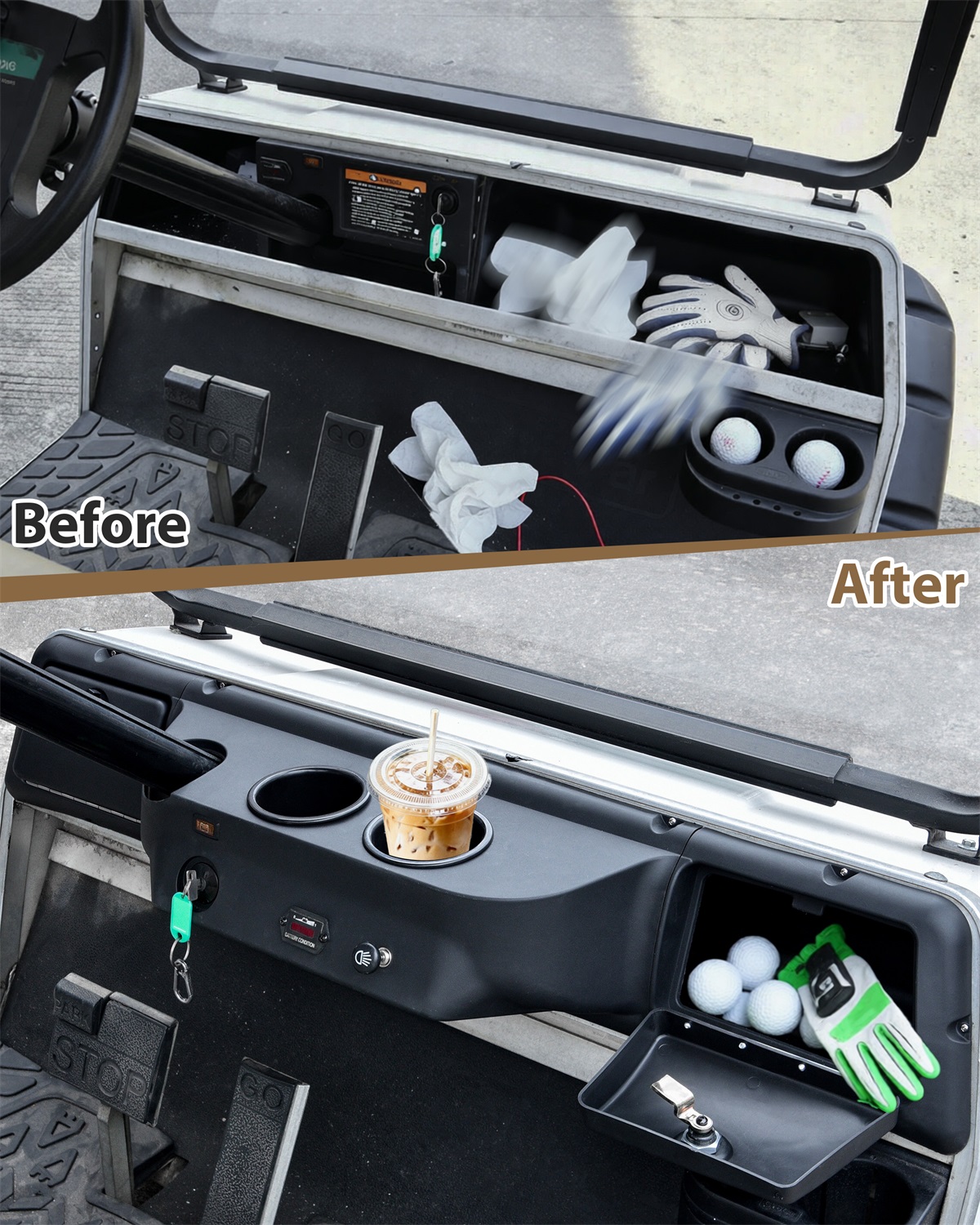 - ENHANCED ORGANIZATION: Refreshes your cart’s system and provides convenient space for holding personal items like cups, phones or sunglasses. It includes two glove boxes which you can store some items of daily use