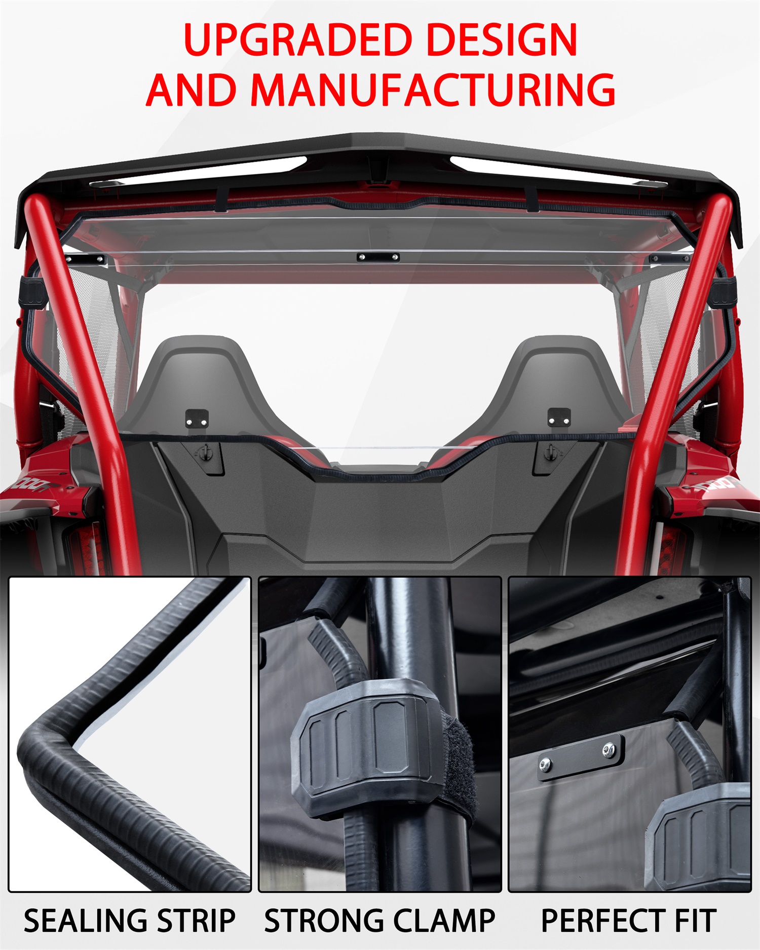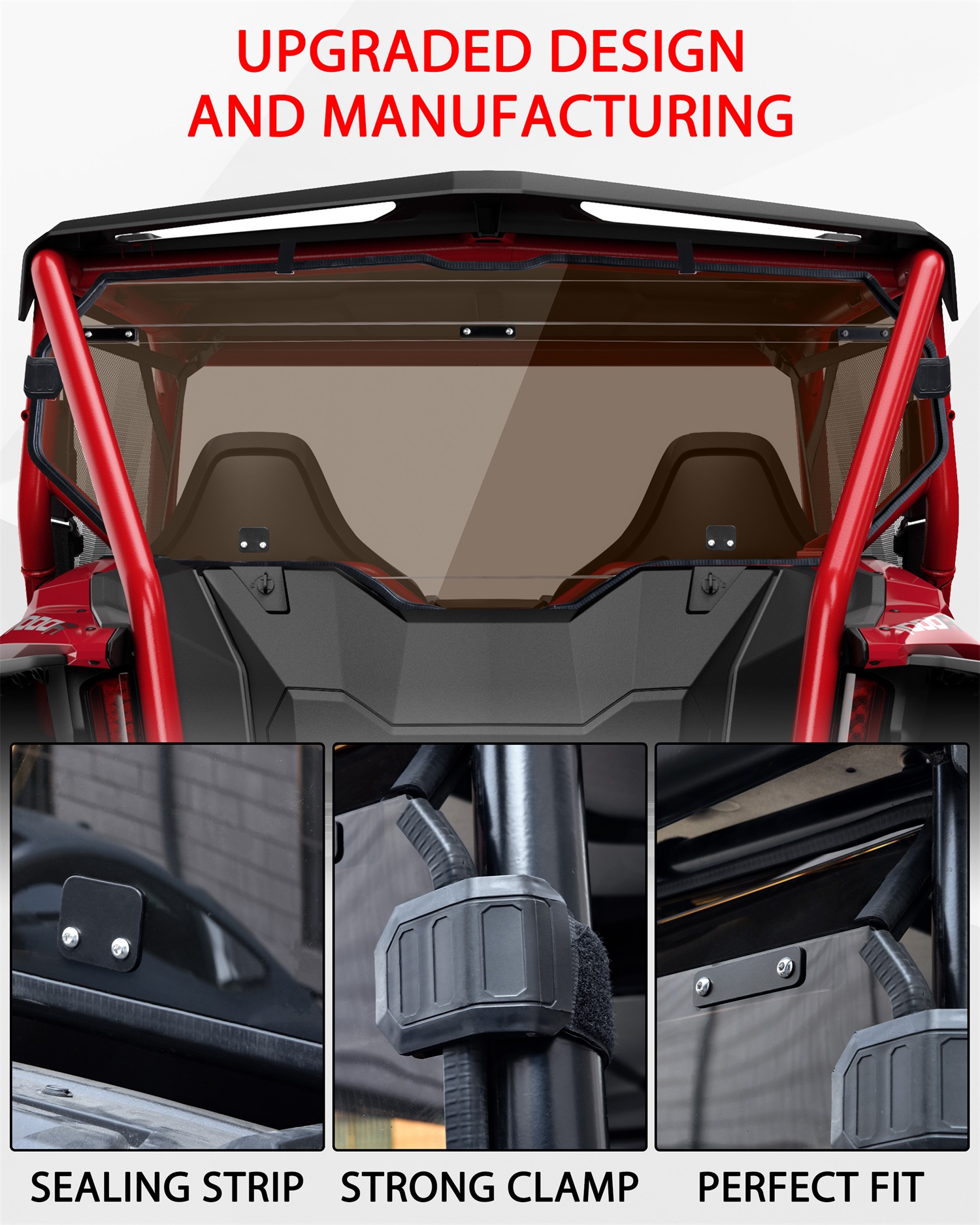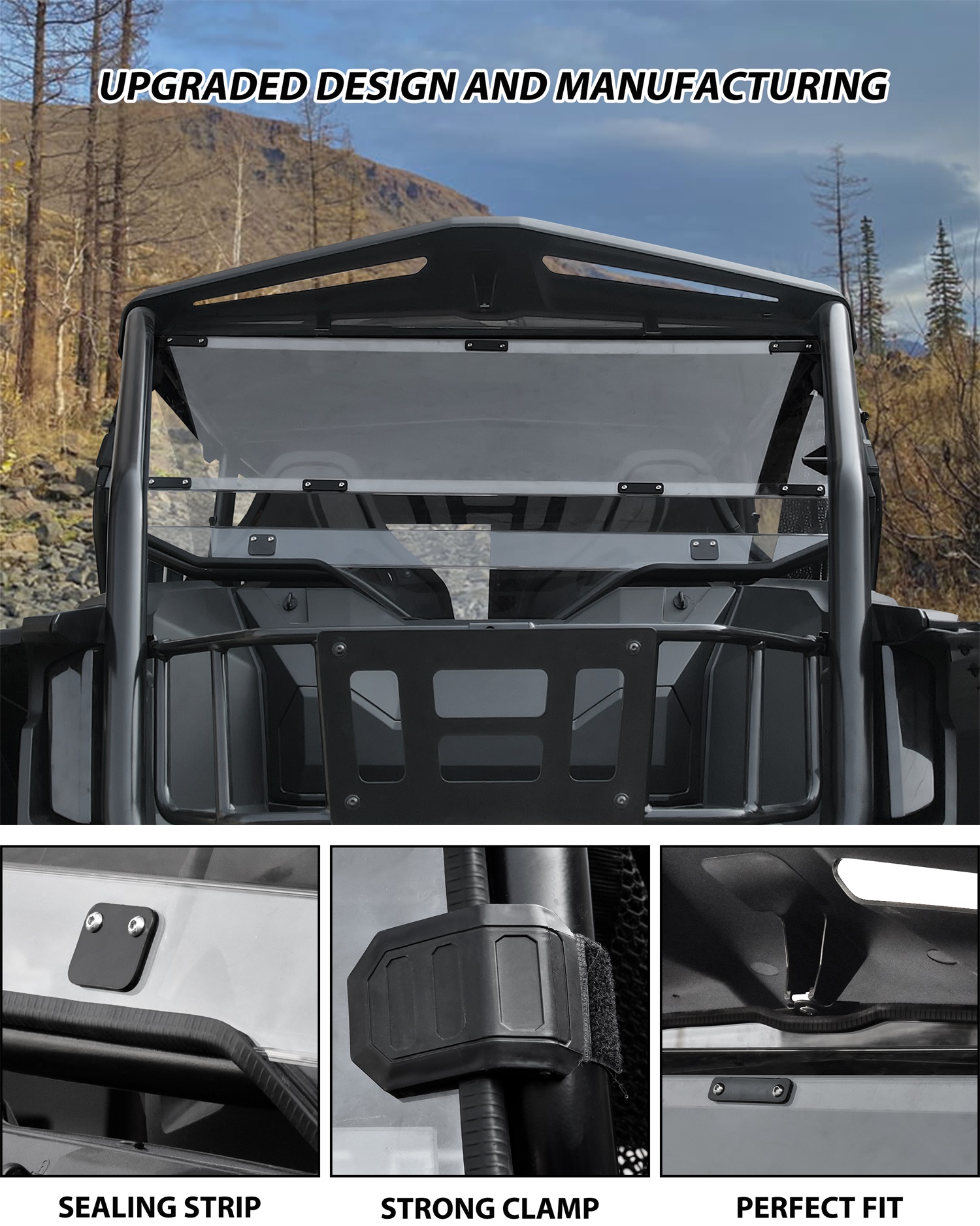- Easy Installation: The rear windshield is easy to install, requiring no drilling; Package include: One piece of Combined rear windshield with all mount hardware, installation instructions (Please refer to the installation video in the listing before your installation)
