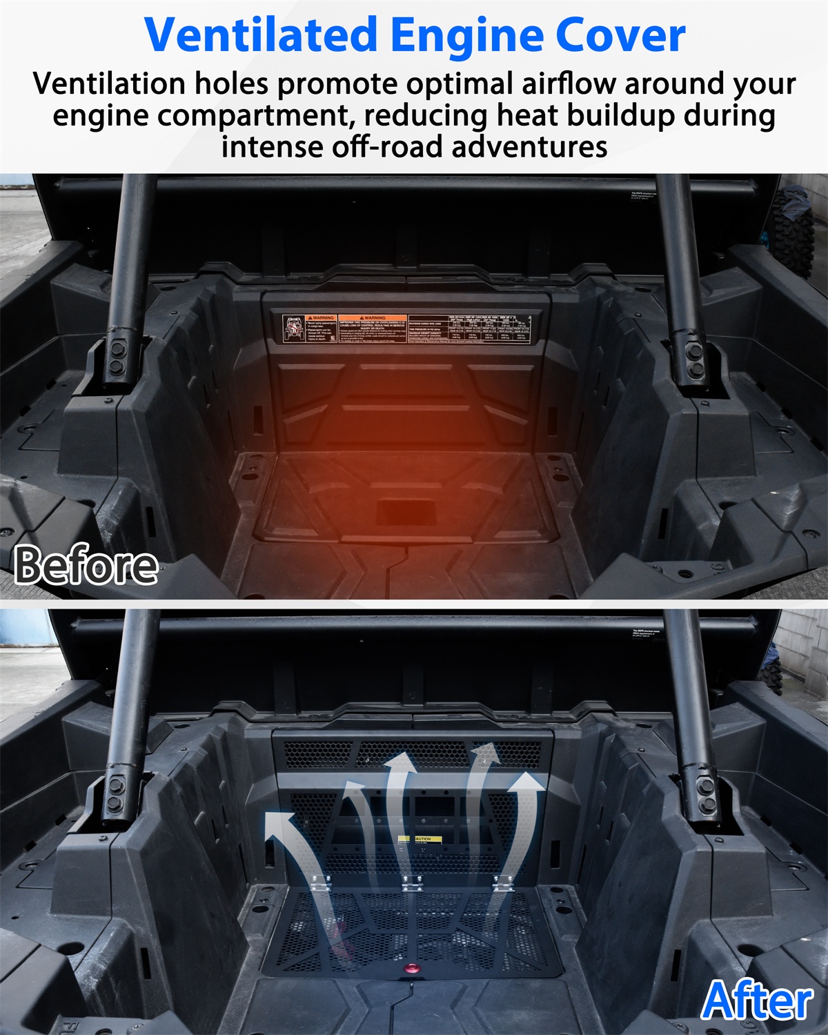 - Enhanced Cooling Performance: Designed with precision-engineered ventilation holes to promote optimal airflow around your engine compartment, reducing heat buildup during intense off-road adventures while maintaining peak performance in harsh conditions like desert trails or muddy terrains