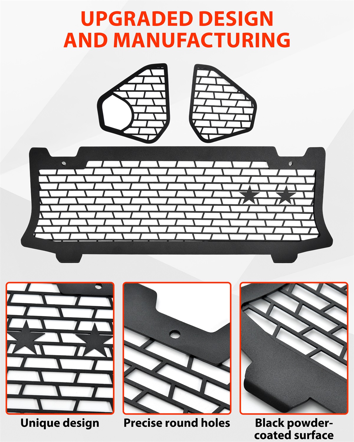 - Package Include: Three pieces of grill mesh with mounting kits, installation instruction; Quick and easy installation (Please refer to the installation video in the listing before your installation)