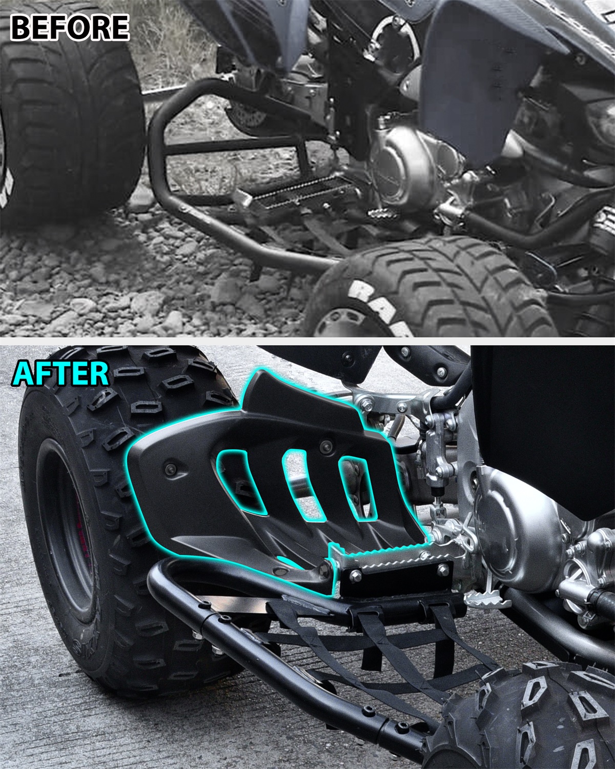 - Good Protection: These guards can effectively block the rocks, debris and sticks in the rough road, make you enjoy a better driving experience