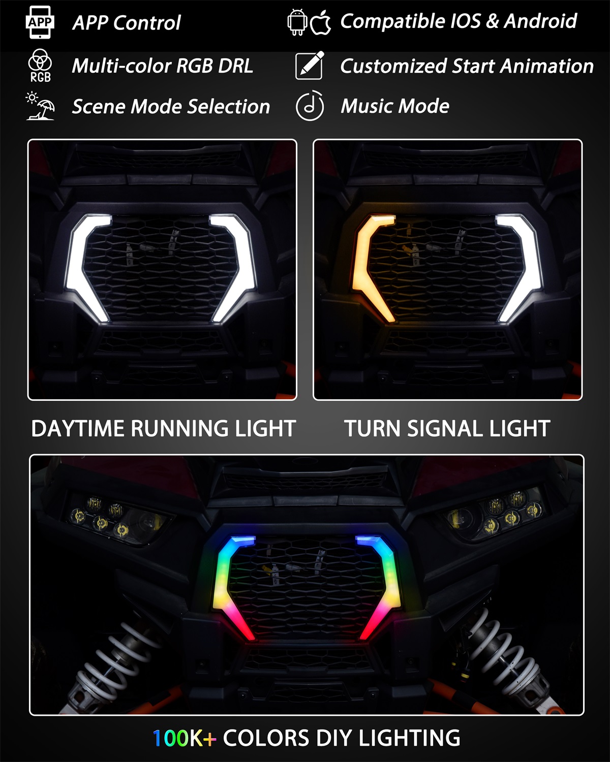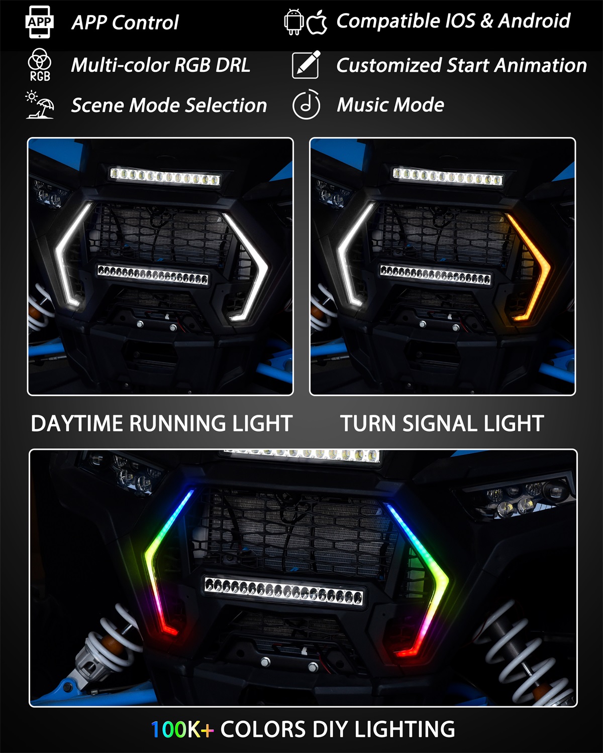 Smart RGB LED Accent Fang Lights for Polaris RZR XP 1000 XP Turbo 2019-2023/ RZR Trail S 2021-2025