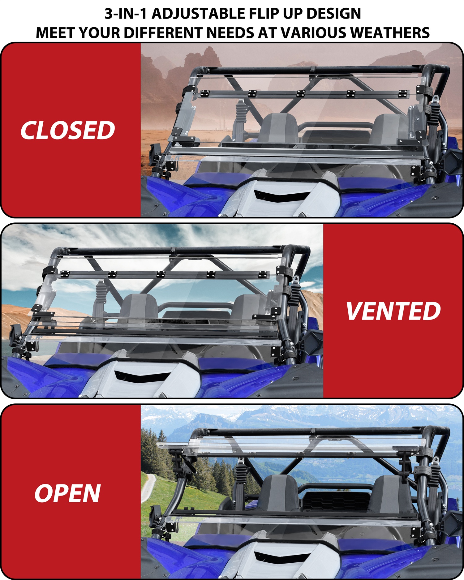 3-in-1 Flip Up Windshield for Yamaha YXZ1000R /SE/SS/SS SE/SS XTR 2019-2025