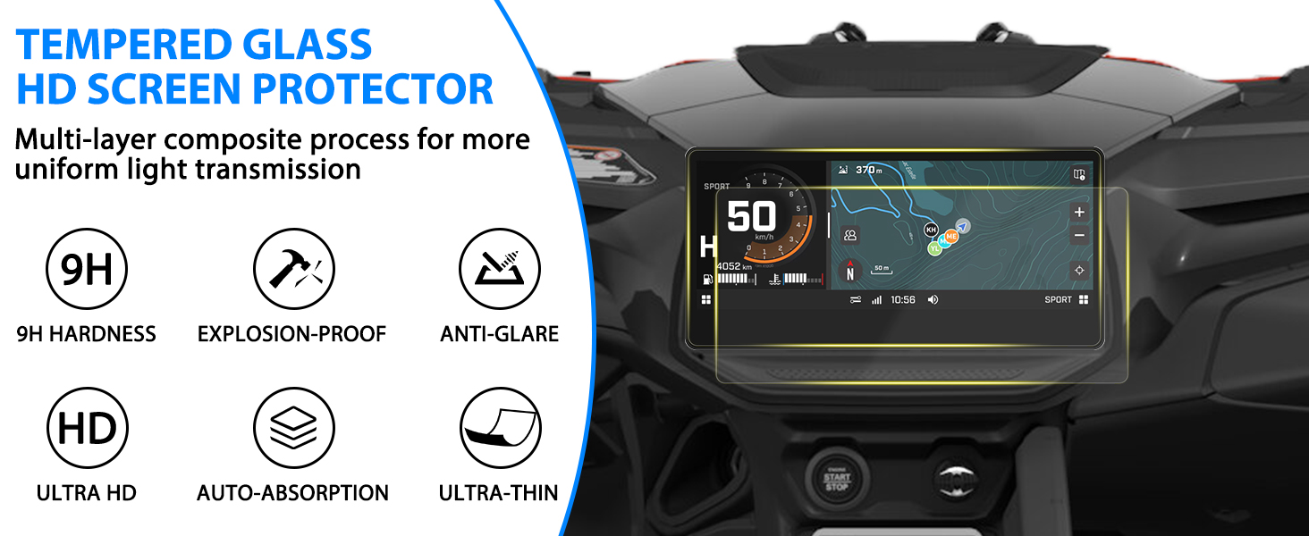 - Compatible Models: Compatible with Can-Am Maverick R / R X / R X RS 2024+, Maverick R MAX / R MAX X / R MAX X rs / R MAX X rs with Smart-Shox 2025+ models (Please refer to the compatible list in description); Perfectly fits your 10.25-inch screen, multi-layer composite process for more uniform light transmission; Ultra thin design ensures sensitive touch, high responsiveness and more precise operation