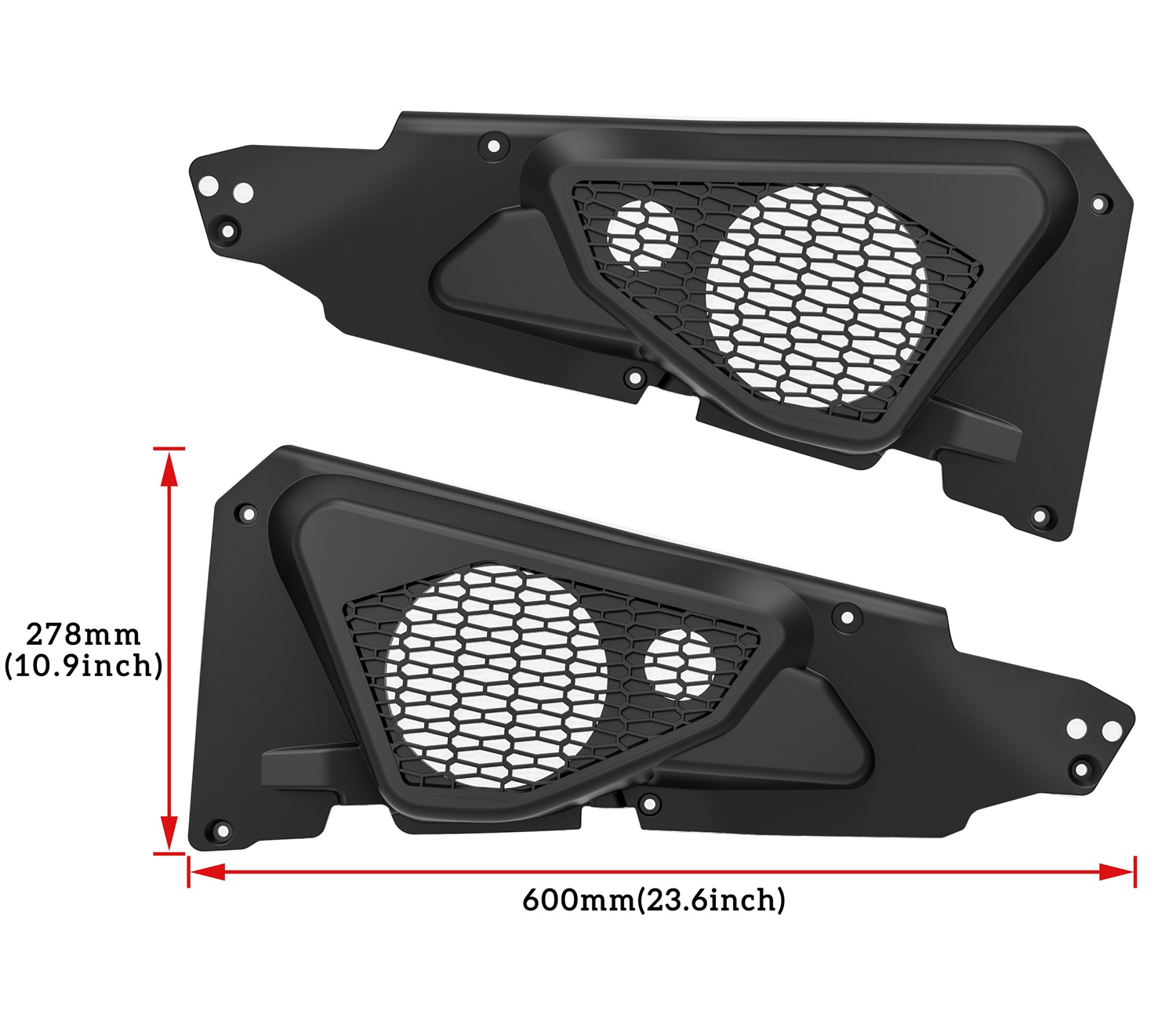 - Package Include: 2 pieces of Door Speaker Pods, all mounting hardware included