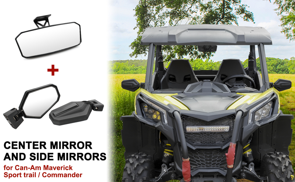 Adjustable Rearview Mirror and Side Rear View Mirrors Kit for Can-Am Maverick Trail Sport Commander 2018-2023