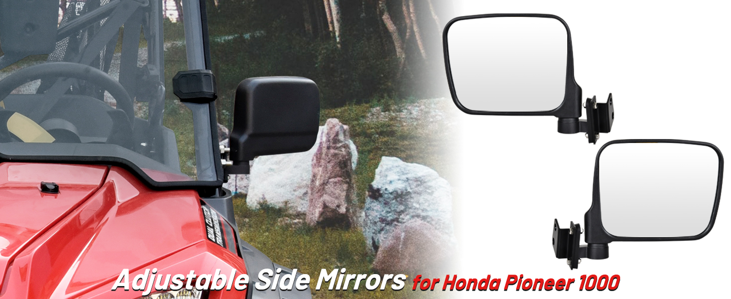 - The foldable side mirrors for Honda Pioneer offers better visibility and wider view, and can adjust different angles for different riders need.