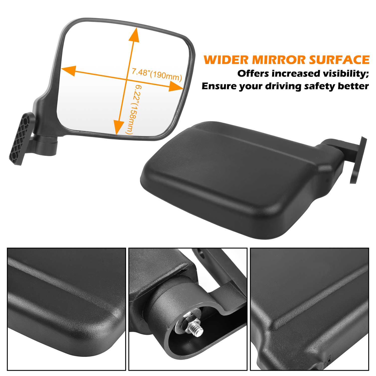 - Adjustable folding side mirrors, wider mirror surface, offers increased visibility, and ensure your driving safety better; Don’t conflict with front windshield installation