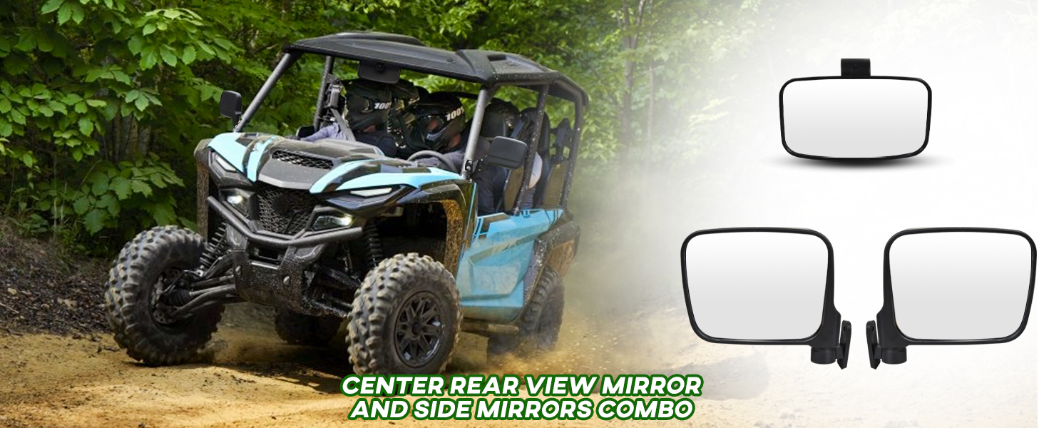 - Convex center rear view mirror, give you a wider view of the trail, help you to stay aware of surroundings out on the trails; Install with durable cast aluminum mounts, which ensures the mirror stay attached in off-road adventures