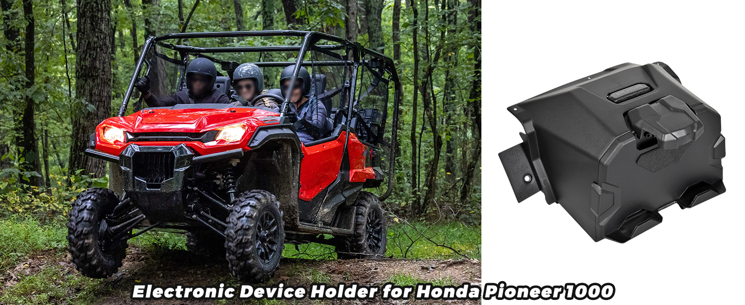 - The UTV phone holder mount for Honda Pioneer 1000 is made of high density polyethylene(HDPE), which is solid and wear resistant, and use 3D scanning technology to ensure the precise fit.