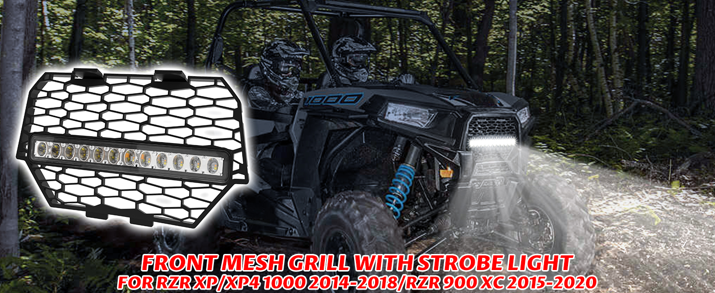 Tags: Front Mesh Grill with Strobe Light, Mesh Grille with LED Remote Control Blue Amber Light Bar, Polaris RZR 900 XC 2015-2020, Polaris RZR XP 4 1000 2014-2018, ZP-YJ-030503-152