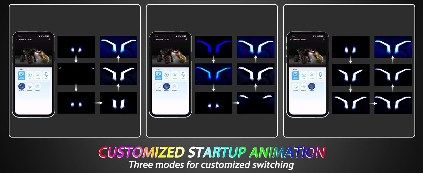 - [UNIQUE CUSTOMIZED STARTUP ANIMATION] – Advanced app control and customization, hundreds of thousands of light colors to choose from, you can adjust the light to your desired color through the color palette in the mobile APP; three startup animations are available for customization and can be switched to achieve unique freedom of DIY; the startup animation selection and switching, DIY color and music synchronization can be controlled through the mobile APP (compatible with IOS and Android); for security, the APP will provide a special authentication for security protection