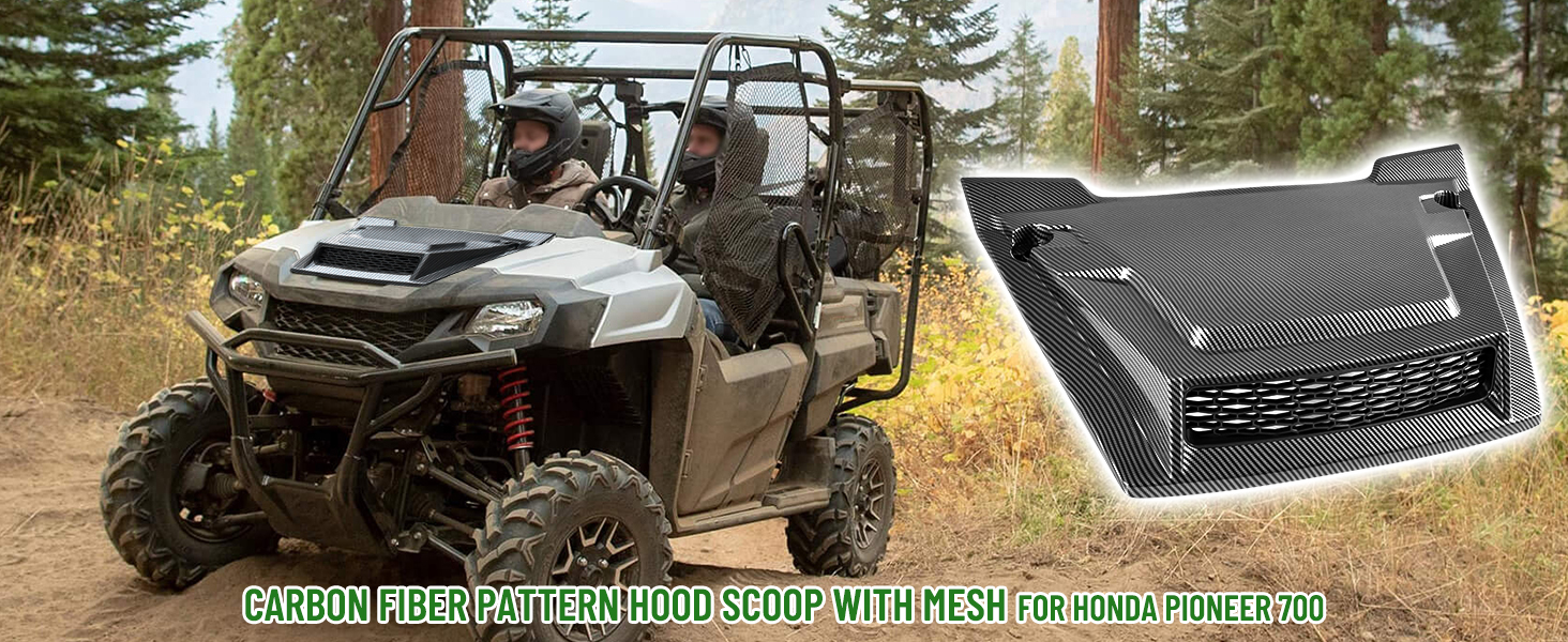 Sport Hood Scoop with Mesh Carbon Fiber Pattern Hood Scoop with Grille Kit Front Hood Cover for Honda Pioneer 700-2 700-4 2014-2025