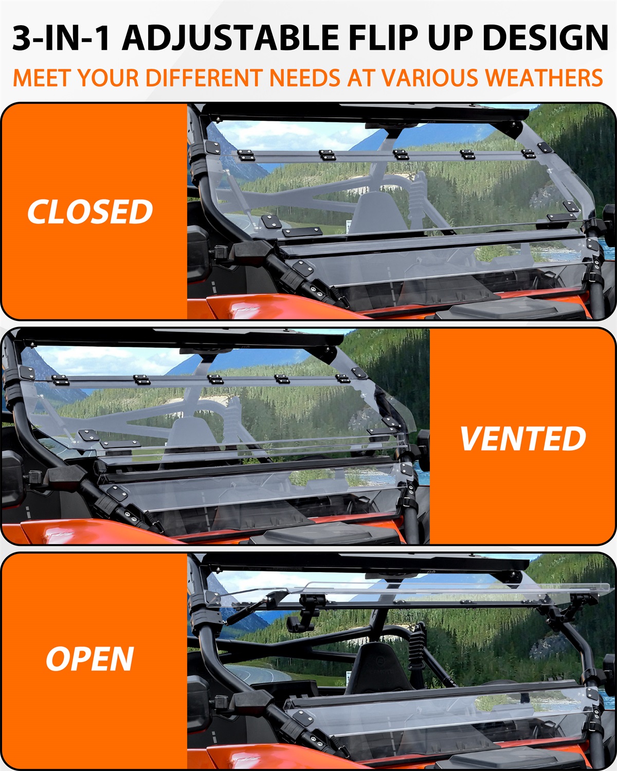 • 3-IN-1 Flip Up Windshield for CFMOTO ZForce 950 H.O. SPORT 2022-2023 / H.O. EX 2022-2024 / SPORT 2020-2022
